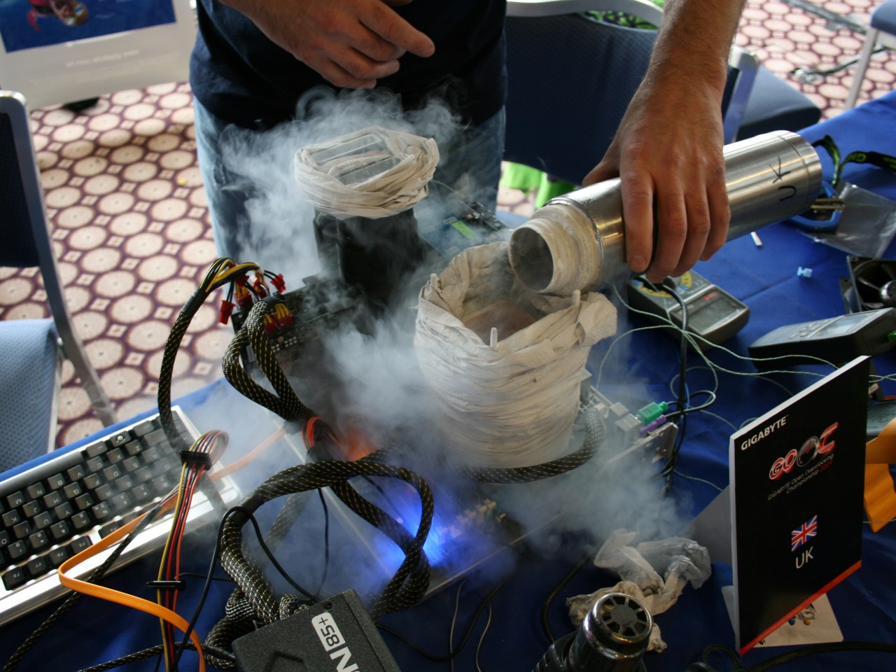 این هم یک عکس جالب از اورکلاکری که با استفاده از نیتروژن مایع (دمای ذوبش 197- درجه است) برای خنک کردن سیستمش استفاده می کنه :